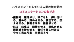 このような心理構造があるからこそ、加害者は「自分は悪くない」「ハラスメントとは思ってない」と主張することが多く、相談をしても「あなたの受け取り方が過敏すぎる」「そんなつもりはなかった」と切り返すケースもしばしば起こります。